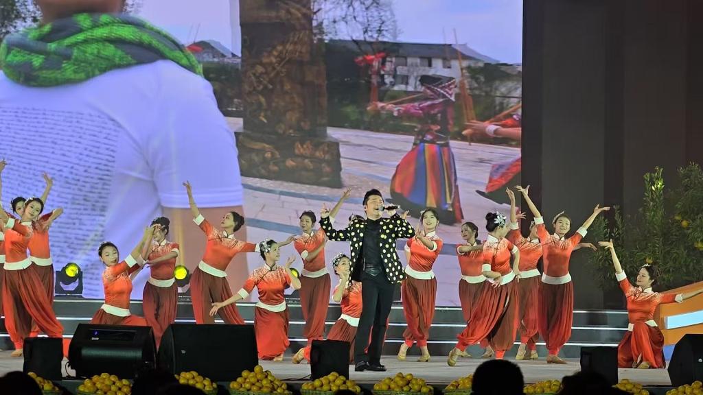 学子们以灵动舞姿为蒋大为、郁钧剑、黄鹤翔等知名艺术家伴舞,用扎实的专业功底与饱满的表现力,在柑橘节的舞台上呈现了一场精彩绝伦的视觉盛宴,既展现了当代大学生的青春风采,也为课程实践教学注入了鲜活活力。