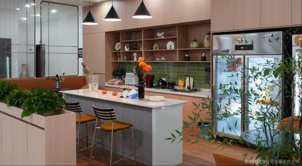 9、休息区设有茶水间、咖啡机、微波炉、冰箱等设施。