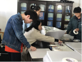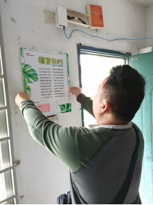 下午12:30,在我系徐勇老师的带领下,宿管部、宣传部、办公室的相关工作人员在图书馆二楼办公室集合,分配好各自的任务之后,大家分别出发进寝室,开始了贴牌工作。